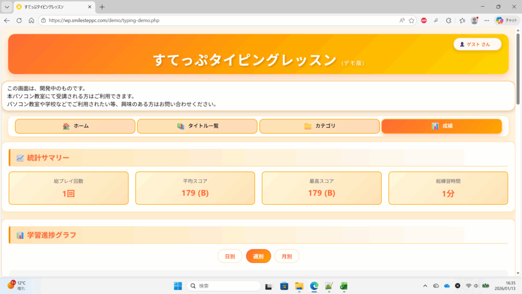 当パソコン教室では、タイピング練習用にオリジナルのシステムを使用しています。